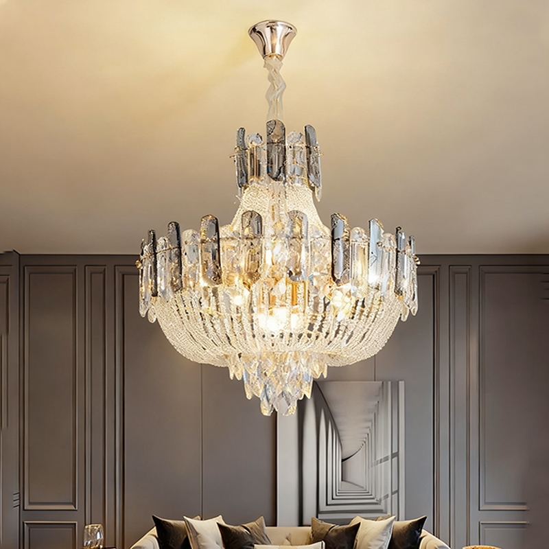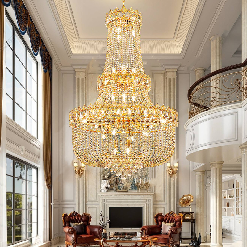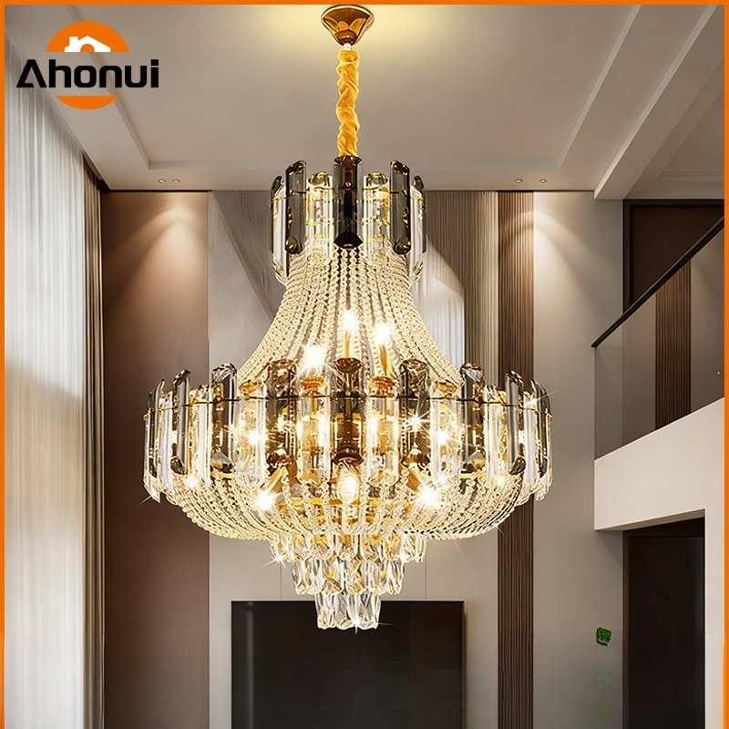 Lampu Hias Gantung Mewah Aesthetic Kristal K9 60/80*180cm 3 tingkat R Tamu Vila Hotel Tangga Pernikahan Wedding Masjid L