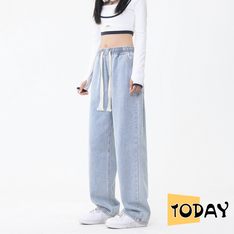 VV - Celana jeans wanita korean style celana jeans pinggang karet celana oversize wanita baggy pants celana kulot jeans