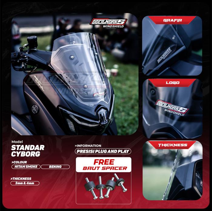 SUPER HEMAT ! DOCILWORKS - VISOR WINDSHIELD STANDAR NMAX TURBO CYBORG NEO NEO S - STD CYBORG TURBO BENING, 3MM MURAH