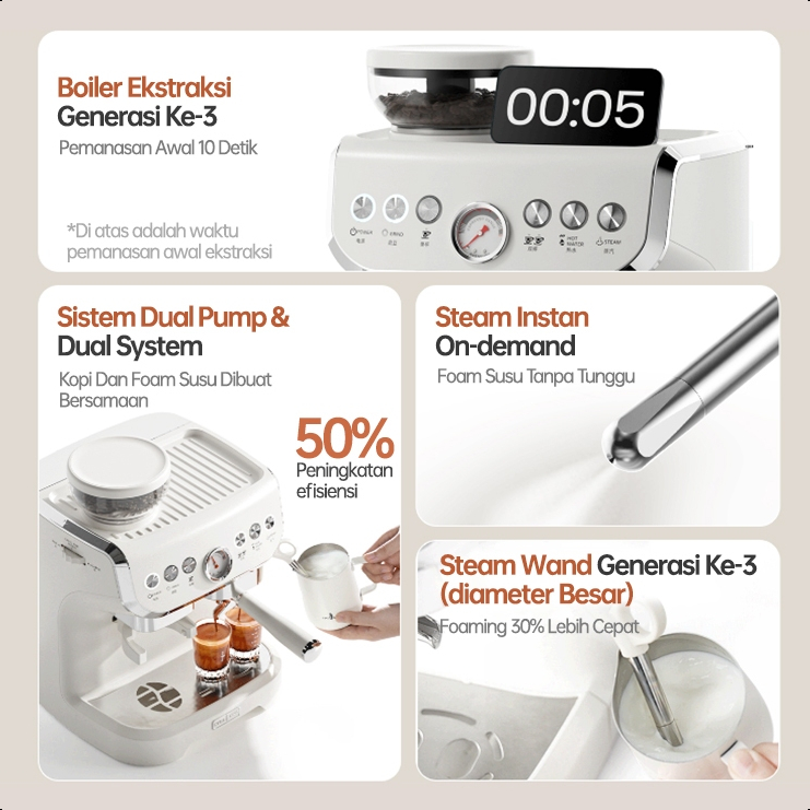 Mesin Kopi Grinder Integrated - Dual Pump Dual System, 58mm Portafilter, Penggiling Kerucut, PID Contro, untuk Pembuat K