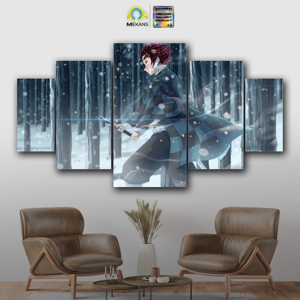 MEKANS 1 SET Pajangan Hiasan dinding DEMON SLAYER RENGOKU Poster Kayu Wall Decor 5pcs