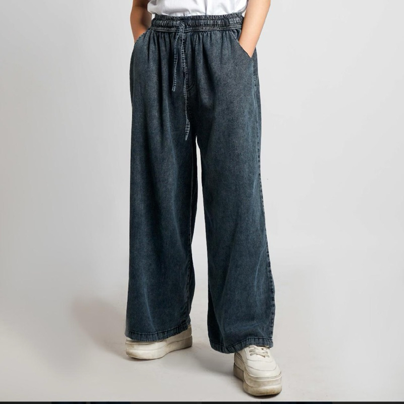 Celana Kulot Panjang Jeans Wanita Fit Super Jumbo 100kg Bigsize Jumbo Pinggang Karet Coco DLINE