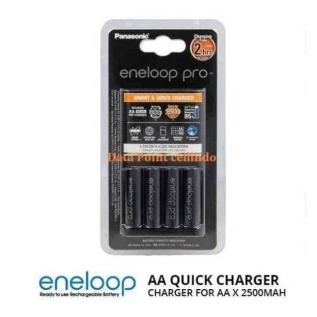 Panasonic Smart & Quick Charger Eneloop Pro 2 hours 4 Battery / Baterai AA 2 jam 2500mAh