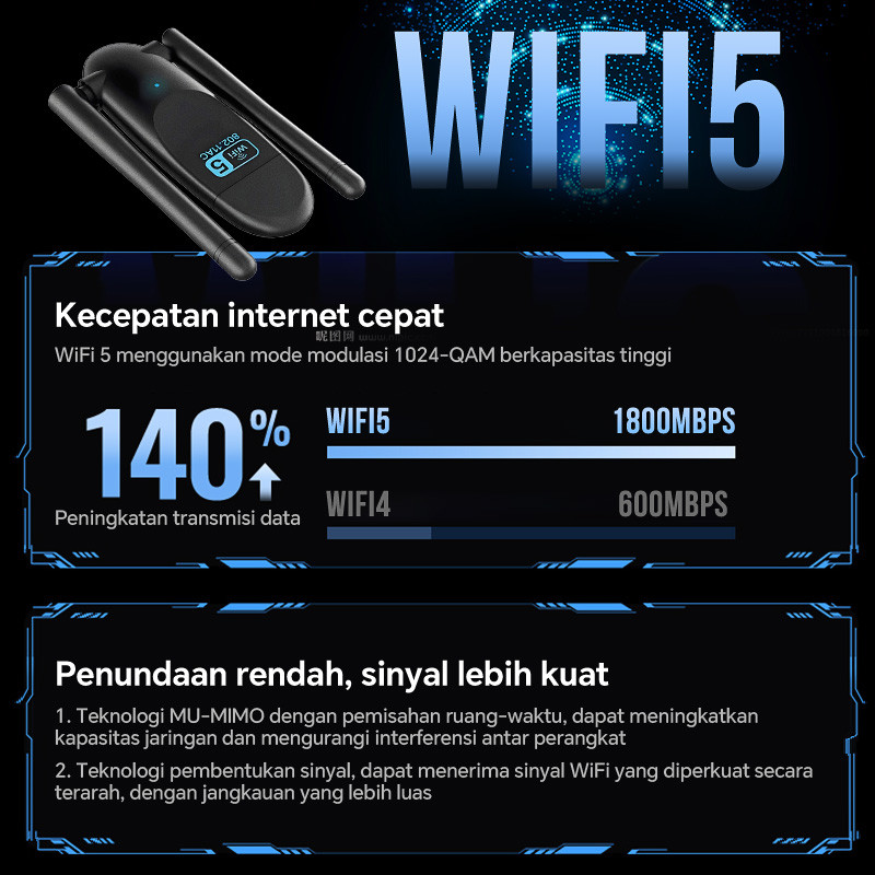 Wireless WiFi 5G 1800Mbps Network Card Receiver USB 3.0 WI-FI 5GHz Adapter Suitable