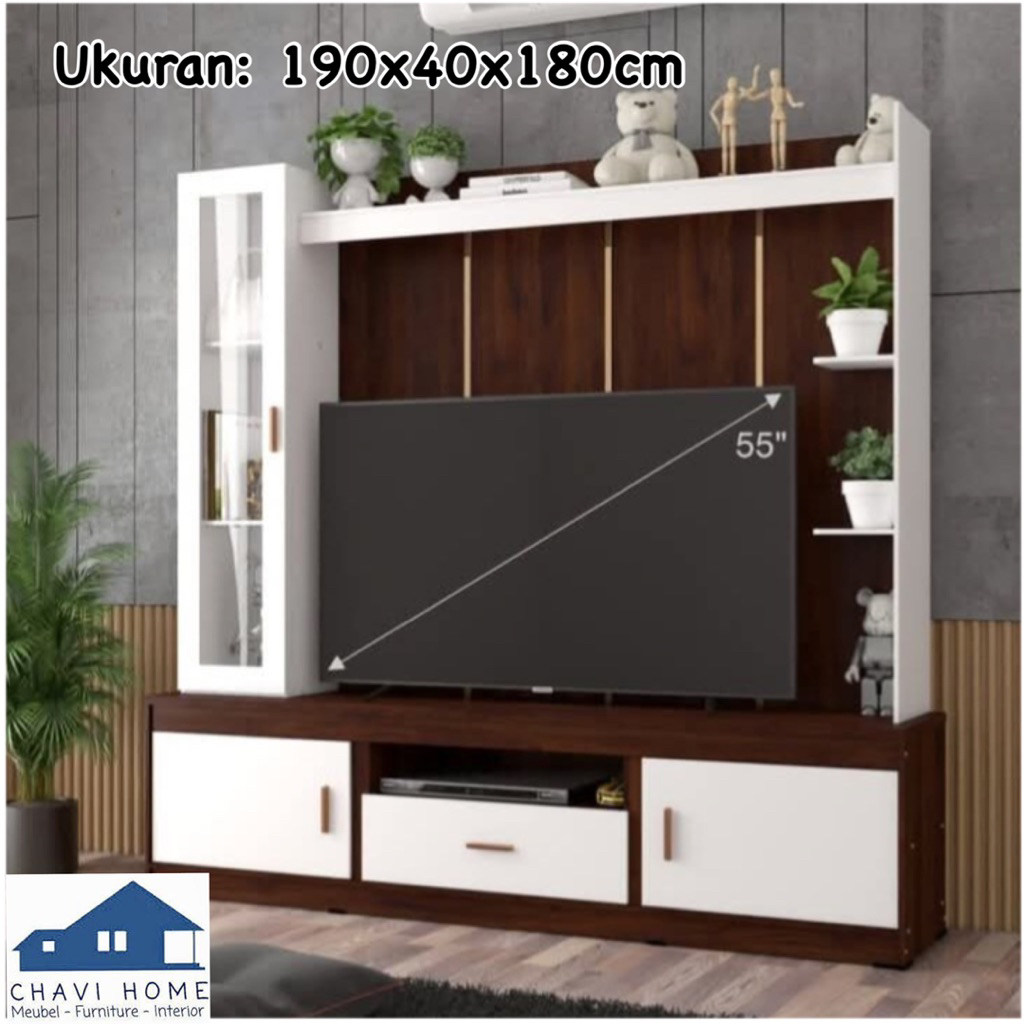 DISKON 70% wall unit buffet tv meja tv rak tv serbaguna ukuran 180cm retro white brown termurah bufet tv kekinian