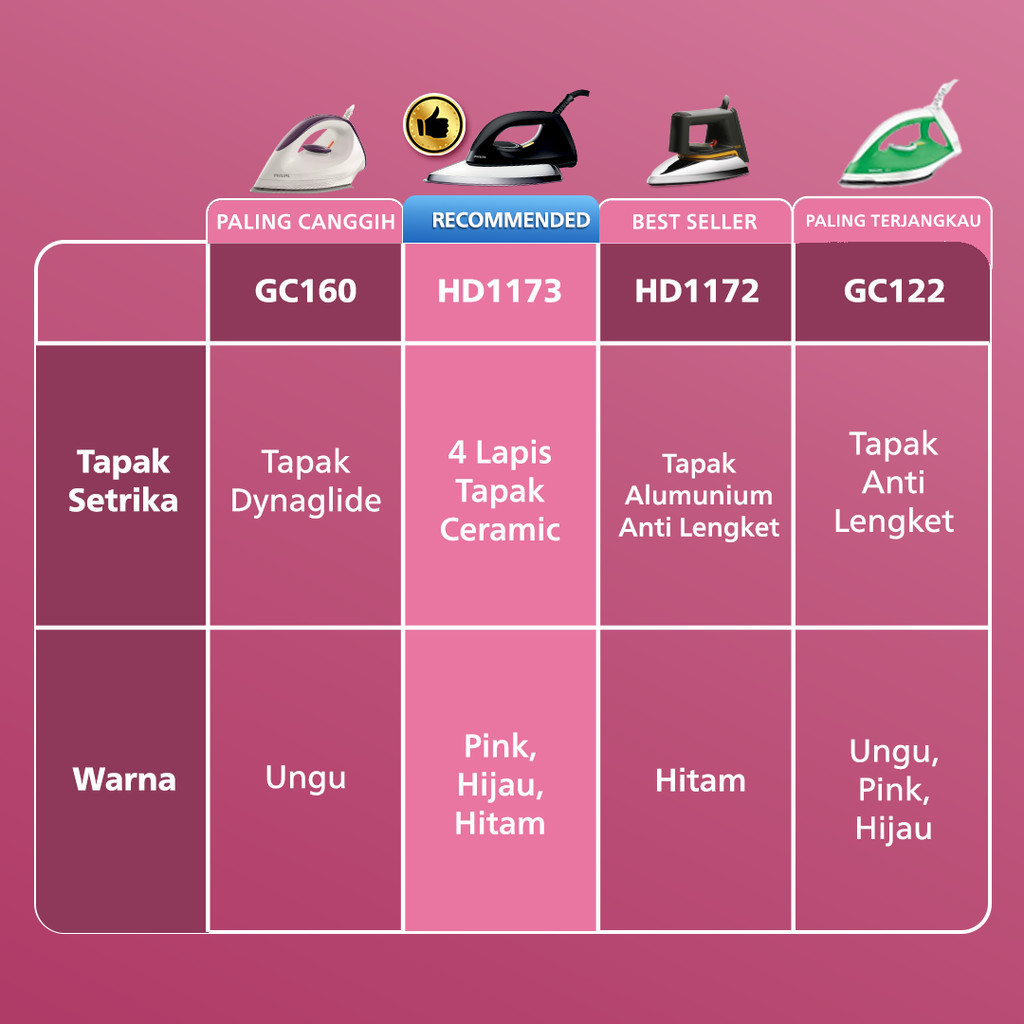 Philips Setrika kering HD1173/80 Hitam, Ceramic 4 Lapis, Anti-Lengket, seterika philips,gosokan baju