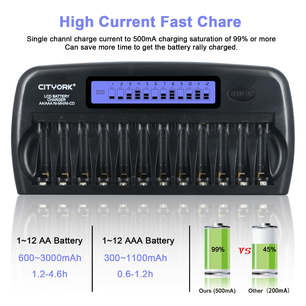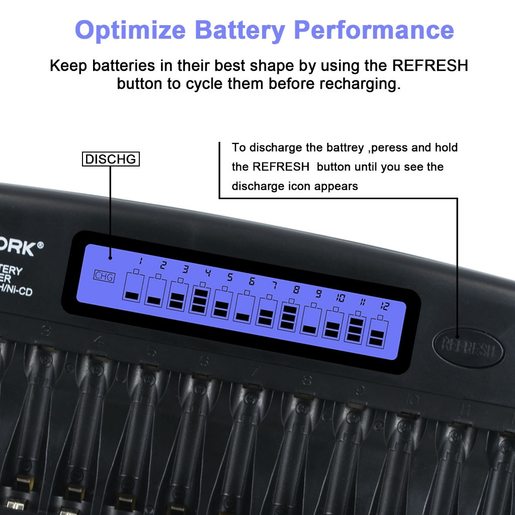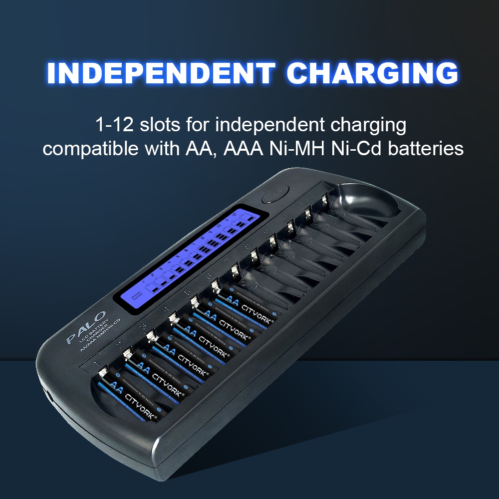 PALO Charger Baterai 12 Slot Cas Baterai AA AAA Universal 1.2V Ni-MH Pengisian Cepat Pengisi Daya