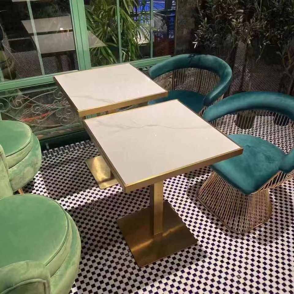 Meja kursi Kopi Kecil Kedai Kopi Gaya Industri Toko Kursi Baja Tahan Karat Kombinasi Kursi Lipat Transparan cafe teras