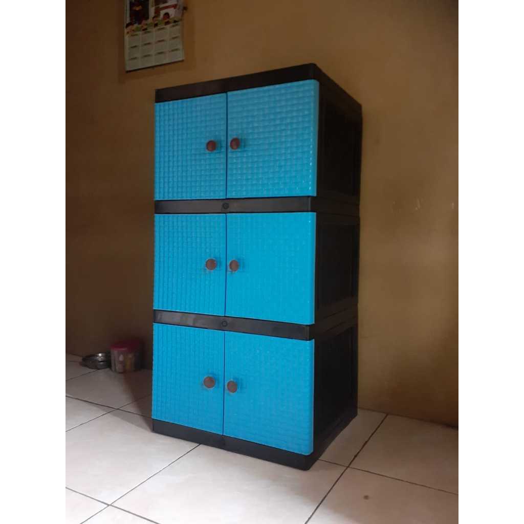 Lemari Plastik Jumbo Susun 4 Galaxy kunci Motif Rotan Furniture