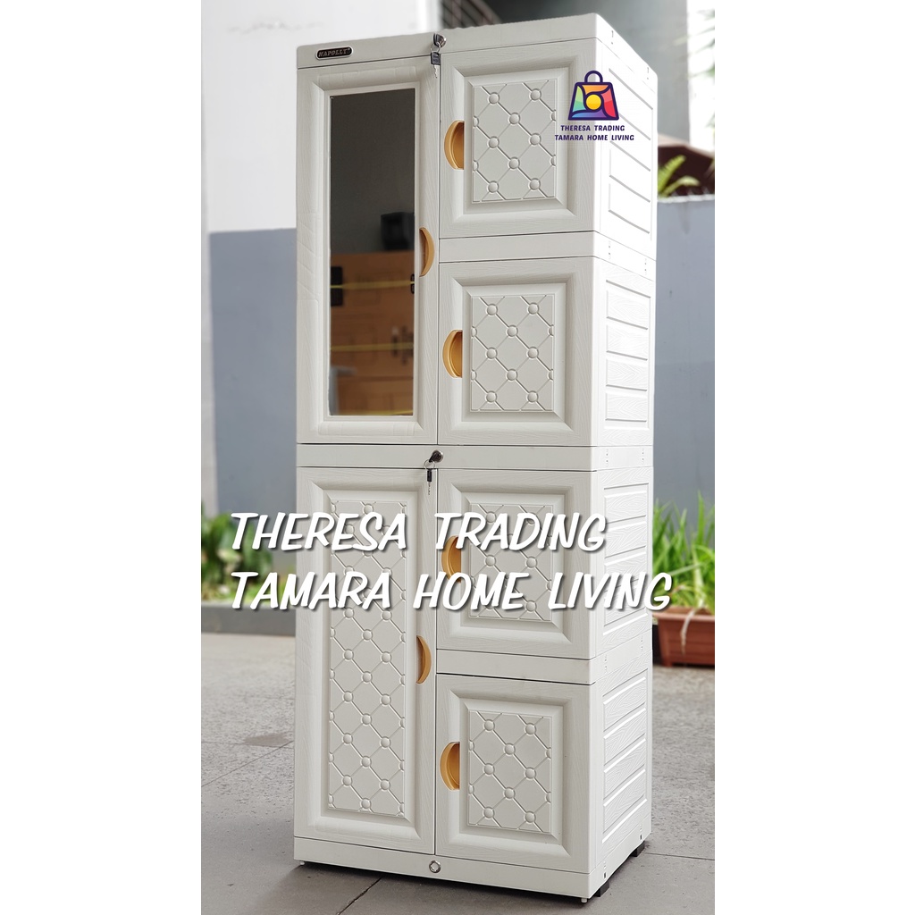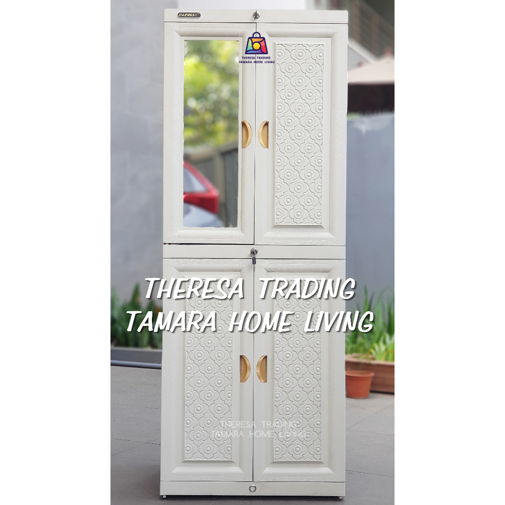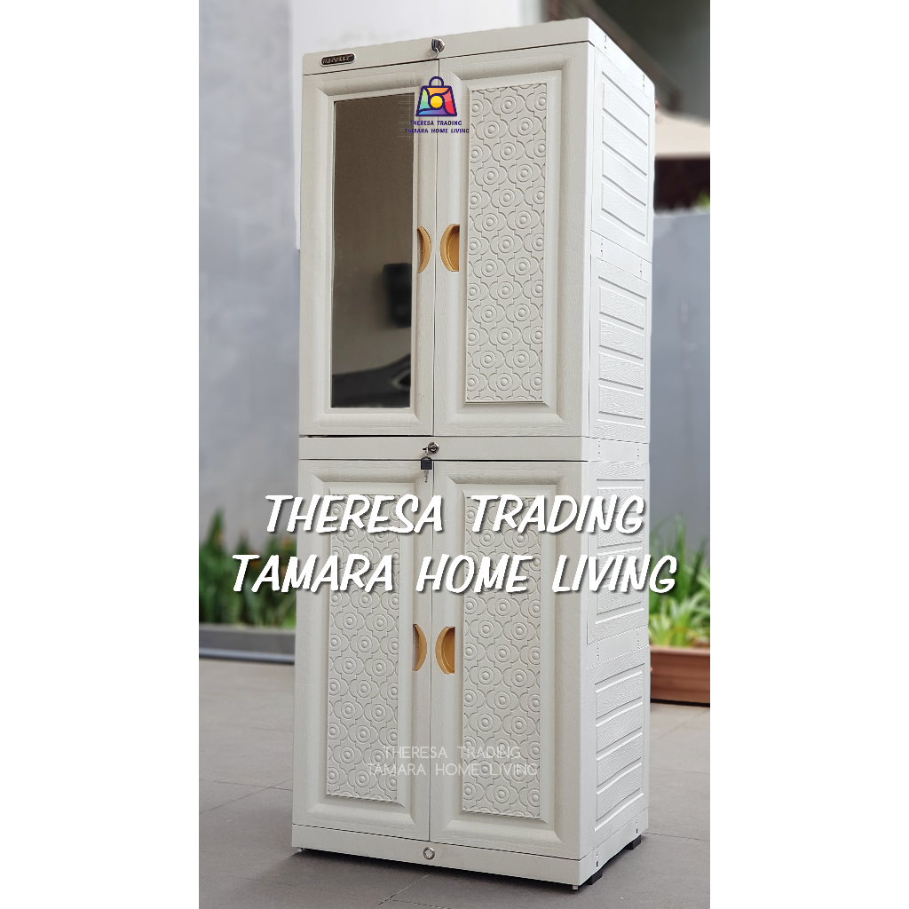 LEMARI PLASTIK NAPOLLY MCAB 4 KACA CERMIN SUSUN 4 EXCLUSIVE DESIGN DI LENGKAPI KUNCI PINTU LEMARI