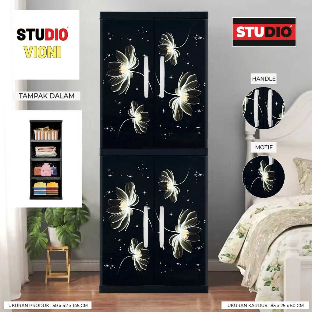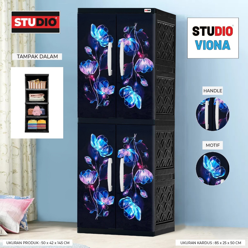 STUDIO - Lemari Pakaian Plastik Jumbo 2 Pintu Susun 4 Motif Printing