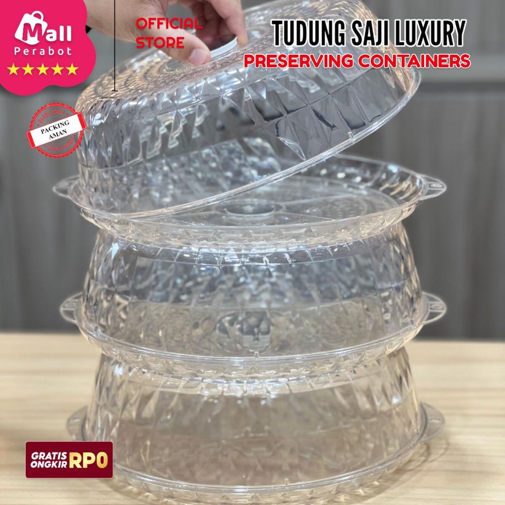 Tudung Saji Kristal Modern Susun Vacuum Food Cover Kualitas Bebas BPA Penutup Makanan Tingkat Pelindung Debu Makanan