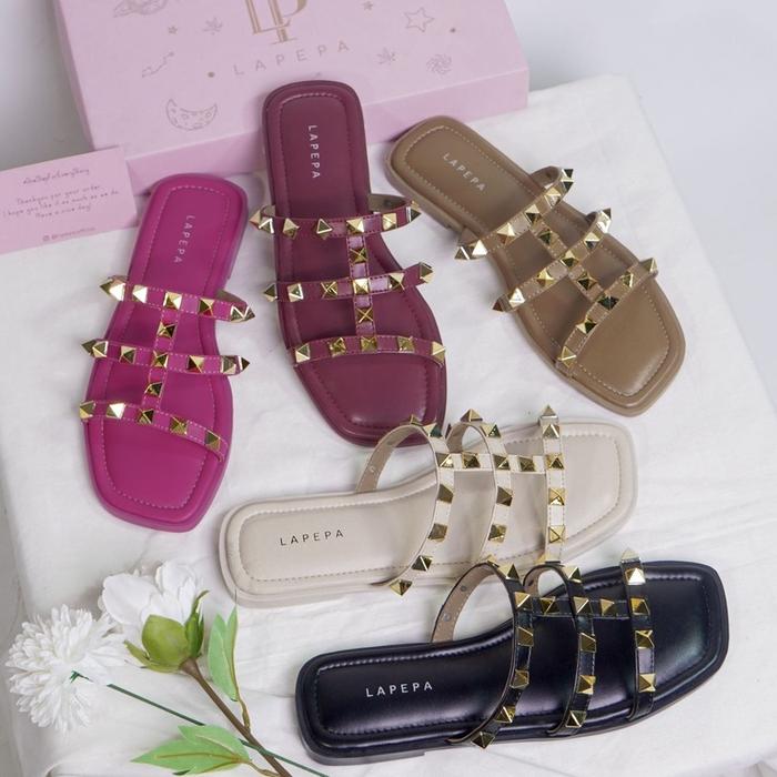 LAPEPA YUK - LAUREN Sandal Wanita Teplek Casual Model Duri Sendal Slop Empuk Flat Kasual Rumahan Fuschia Selop Korea