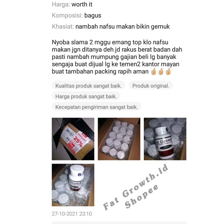 Penggemuk Badan Fat Growth terbukti ampuh menambah berat badan isi 75 kapsul