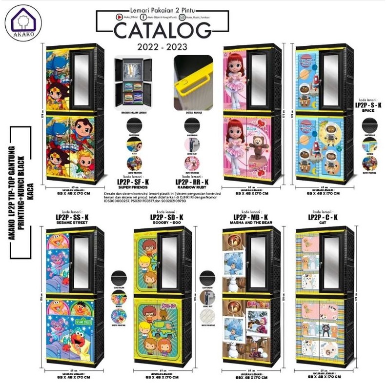 AKAKO - Lemari Pakaian Plastik VIP Tiptop JUMBO 2 Pintu PRINTING Motif Gantung Pakai Kaca/Tanpa Kaca