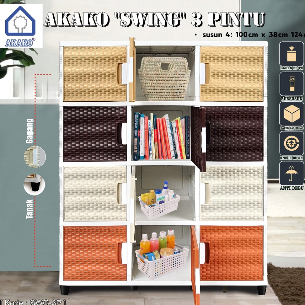 Akako Swing - Lemari Full Rak Rotan 3 Full Colour Pintu susun 2, 3, 4, 5