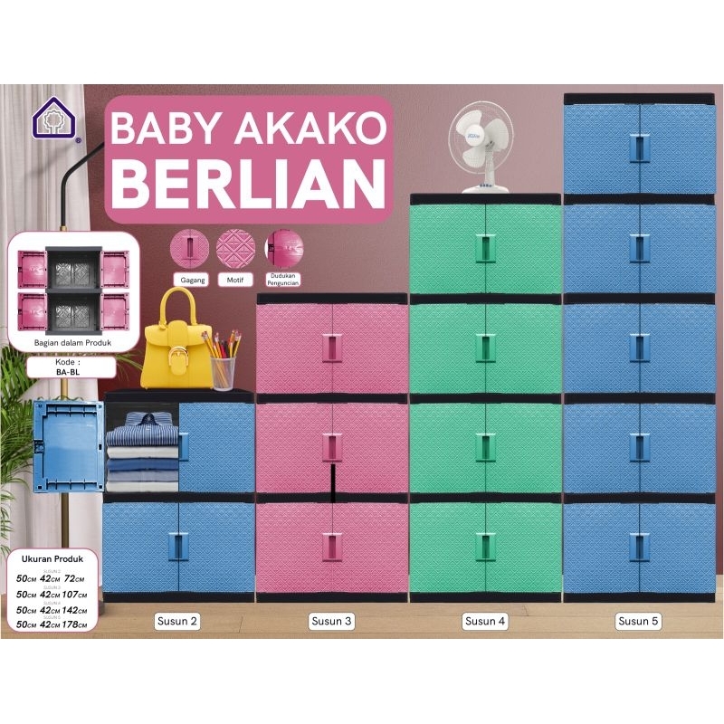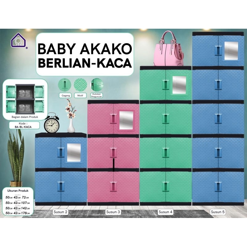 AKAKO - Lemari Kaca Bilpin Jumbo Pakaian Plastik 2 Pintu Susun 2, 3, 4 & 5 BERLIAN