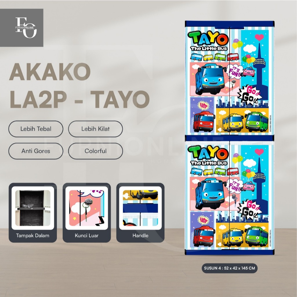 AKAKO - Lemari Pakaian Plastik Anak Baby Jumbo 2 Pintu Susun 4 Motif Printing LA2P