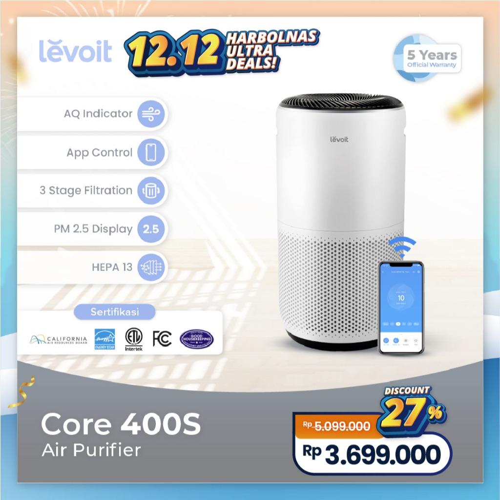 Levoit Air Purifier Core 400S Smart Wifi True HEPA H13 Pembersih Udara Original