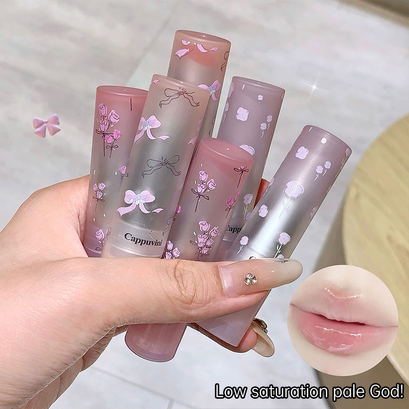 [Free Gift] CAPPUVINI Blooming Watery Glow Lipstick Lip Glossy Korean Lipstik Water Glass Mirror Lip Gloss