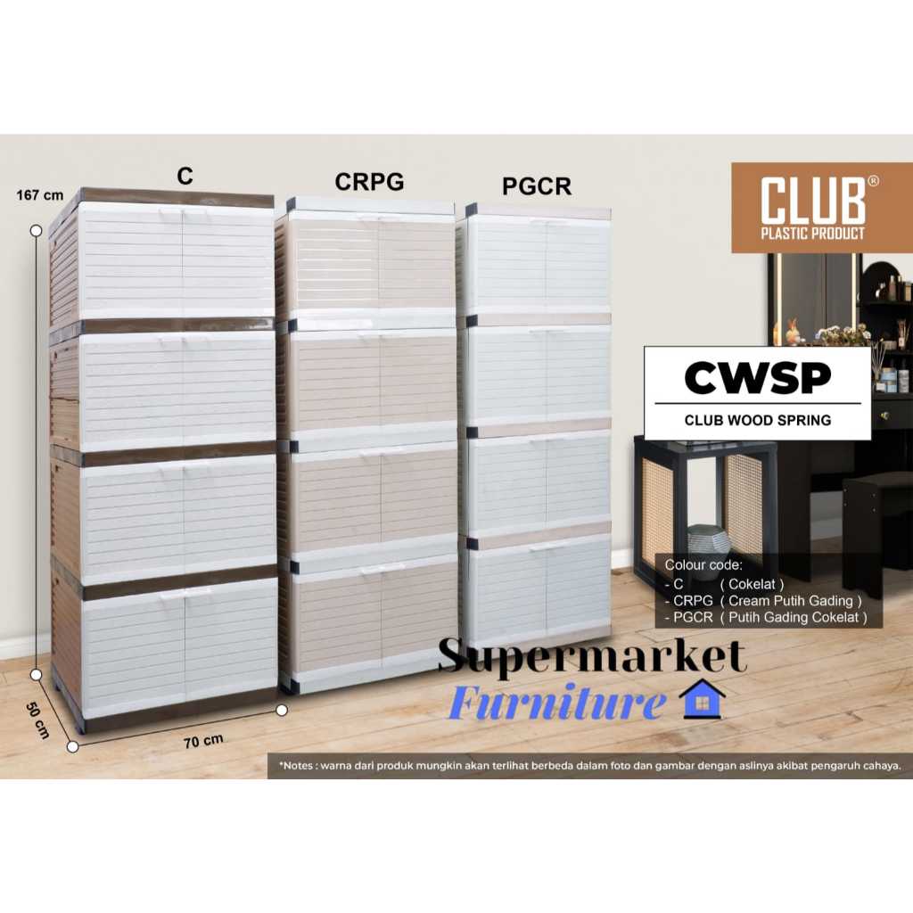 LEMARI PAKAIAN PLASTIK CLUB SUSUN 4 BESAR POLOS