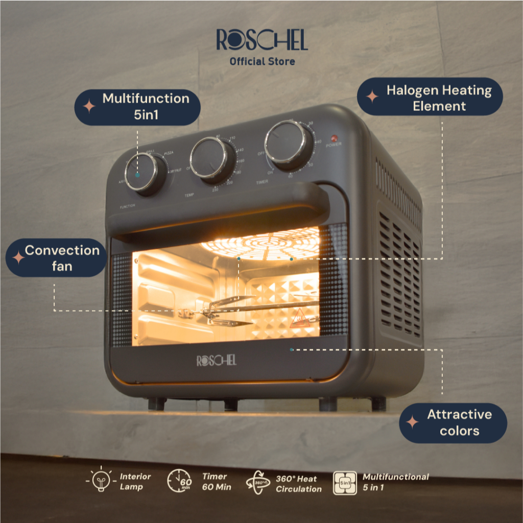 Roschel Air Fryer Oven With Rotisserie 16 Liter 5in1 With Dehydrator Penggoreng Tanpa Minyak Pemanggang Stay On Function