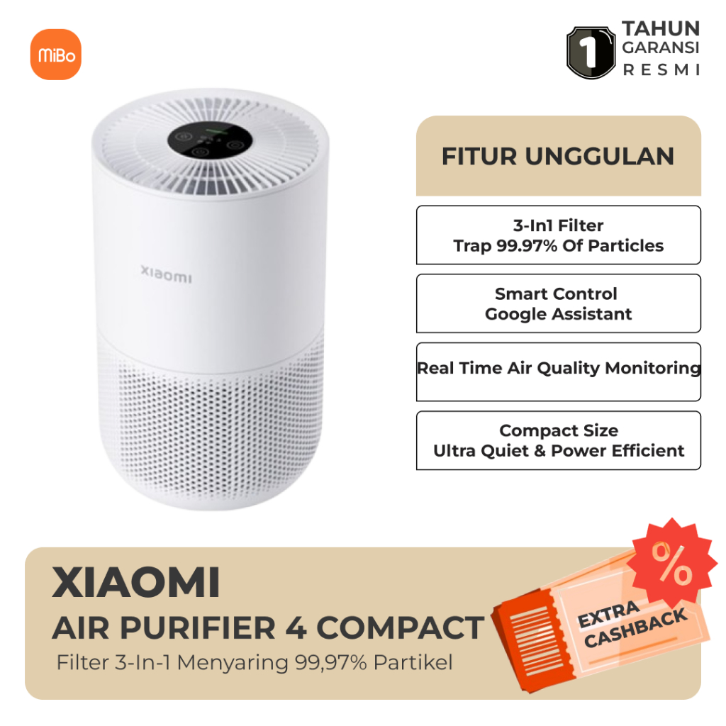 Xiaomi Air Purifier 4 Compact OLED - Filter 3-in-1 - Hemat Energi - Hilangkan Alergen- Smart Control