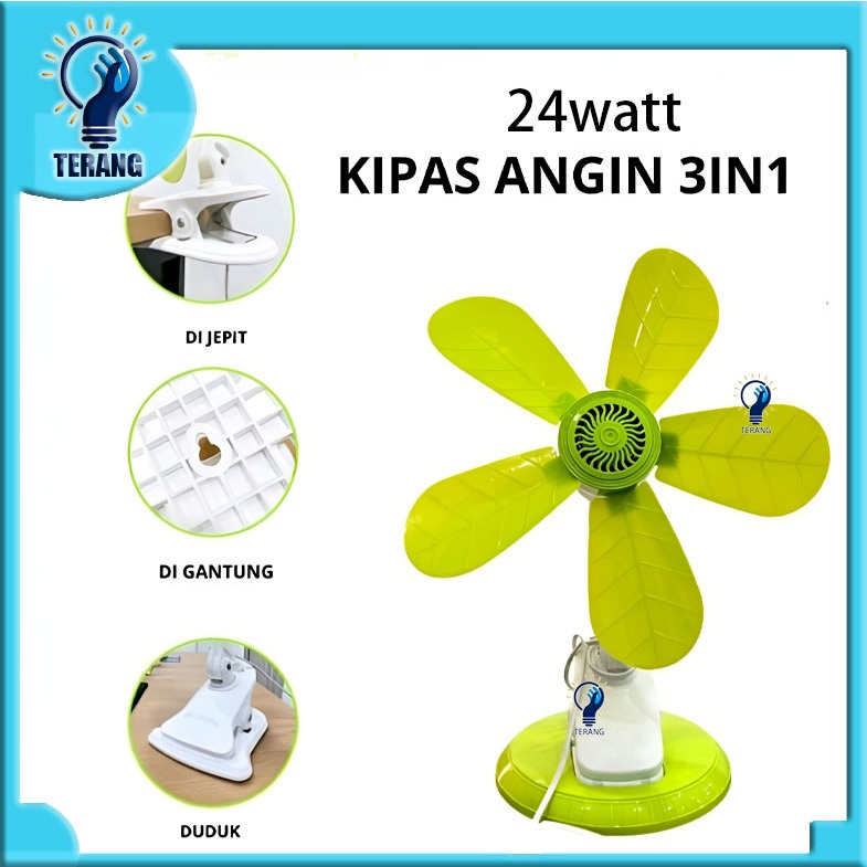 Kipas Angin Jepit 3 in 1(dinding,duduk,jepit) / Mini Fan jepit 5 baling 24w