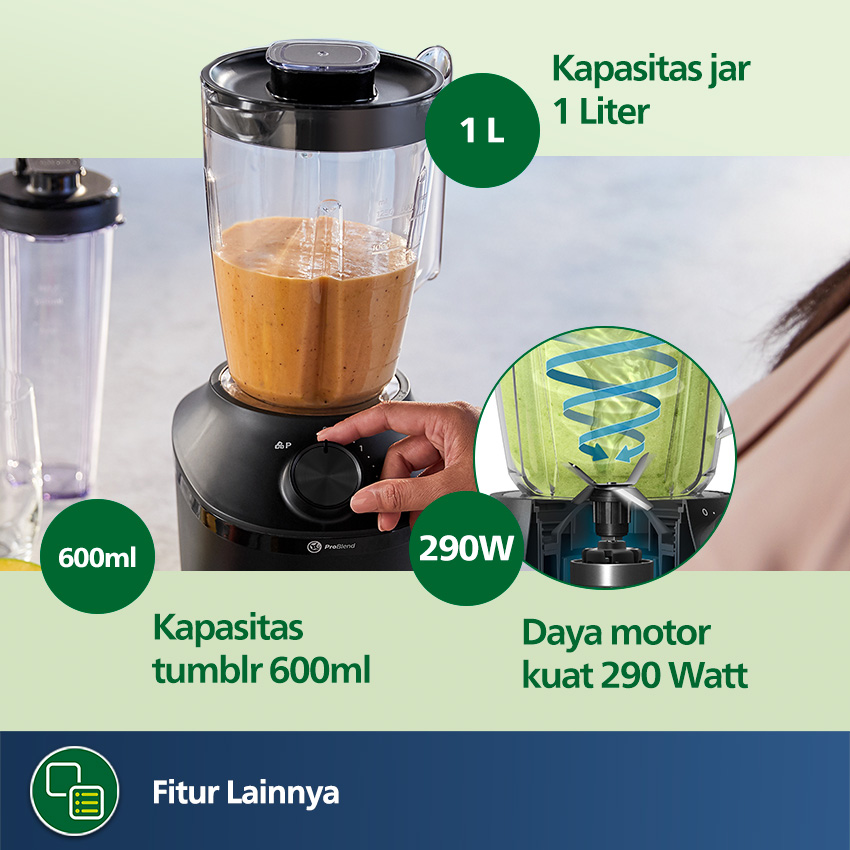 Blender Philips Plastik 1 Liter - 3000 series HR2042/41 - Blender Jus - Blender Juicer- Blender Terbaik - Hitam