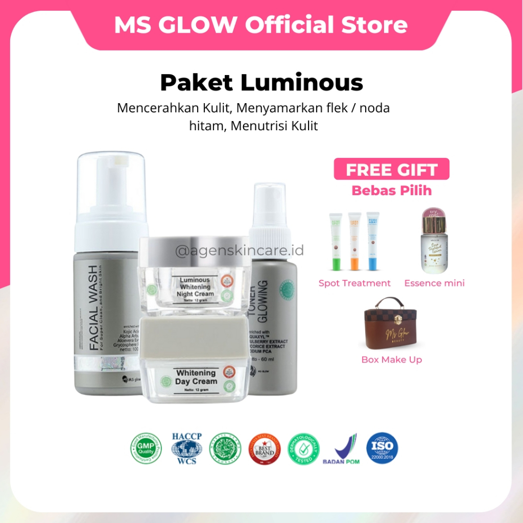 MS Glow Official Store Whitening Acne Ultimate Luminous DNA 1 Paket Ori 100% Lengkap BPOM