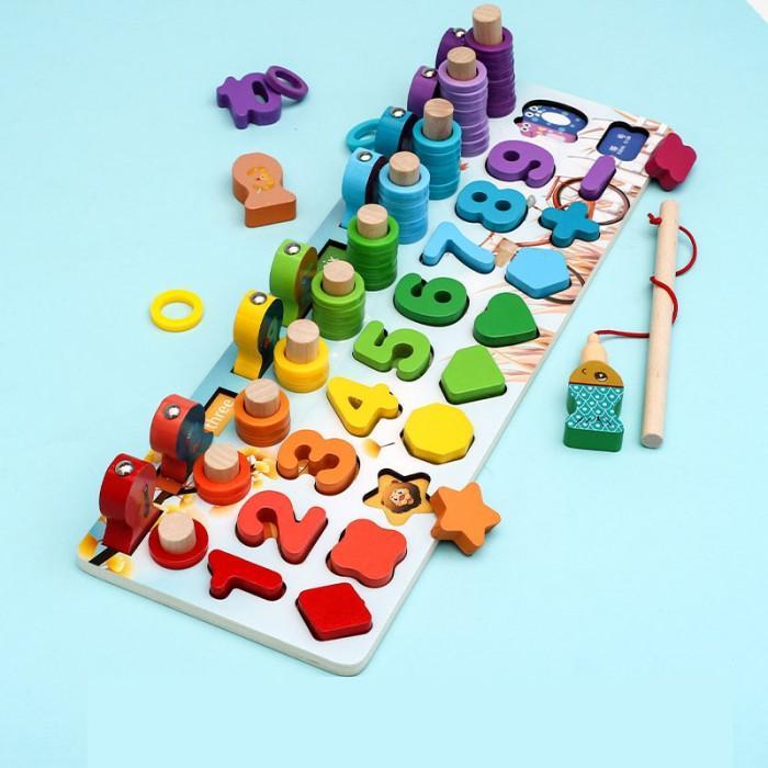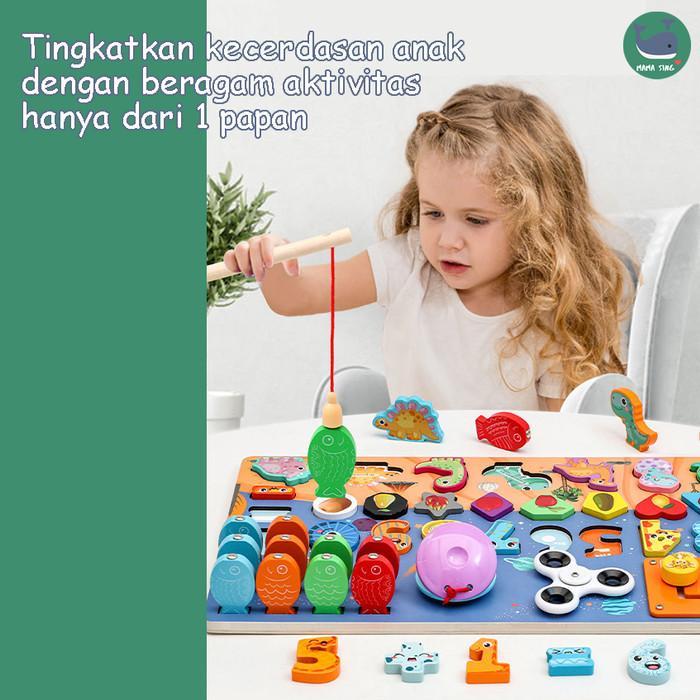 MAMA SING Teaching Board Multifungsi Mainan Papan Kayu Edukasi Anak - 5in1