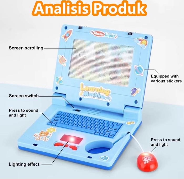 MAINAN LAPTOP EDUKASI KOMPUTER LEARNING MACHINE TOYS - LAPTOP SAFARI BIRU