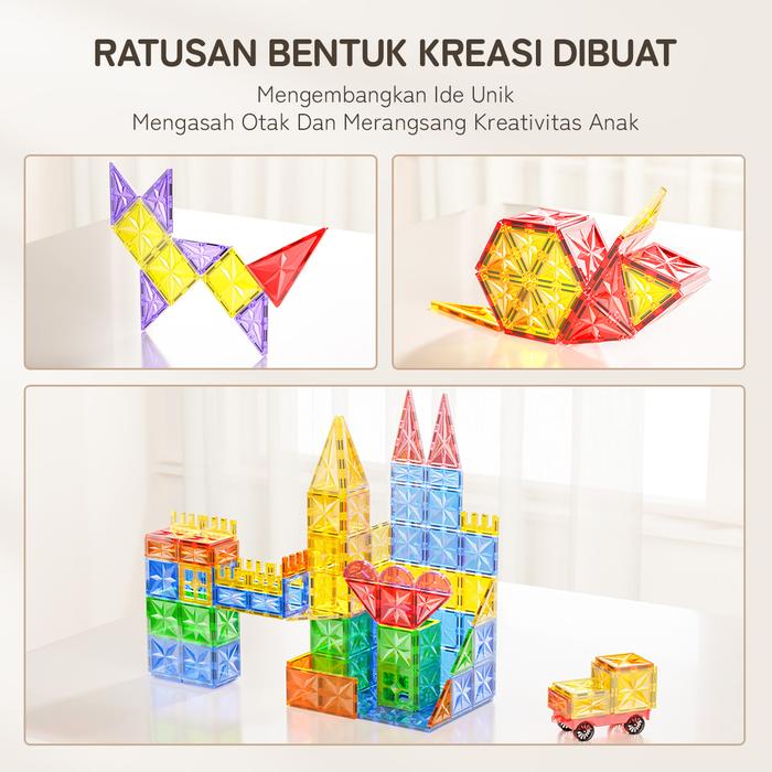 Momwell Mainan Magnetic 4D Tiles Building Blocks Mainan 63Pcs Marble Run Race Mainan Edukasi