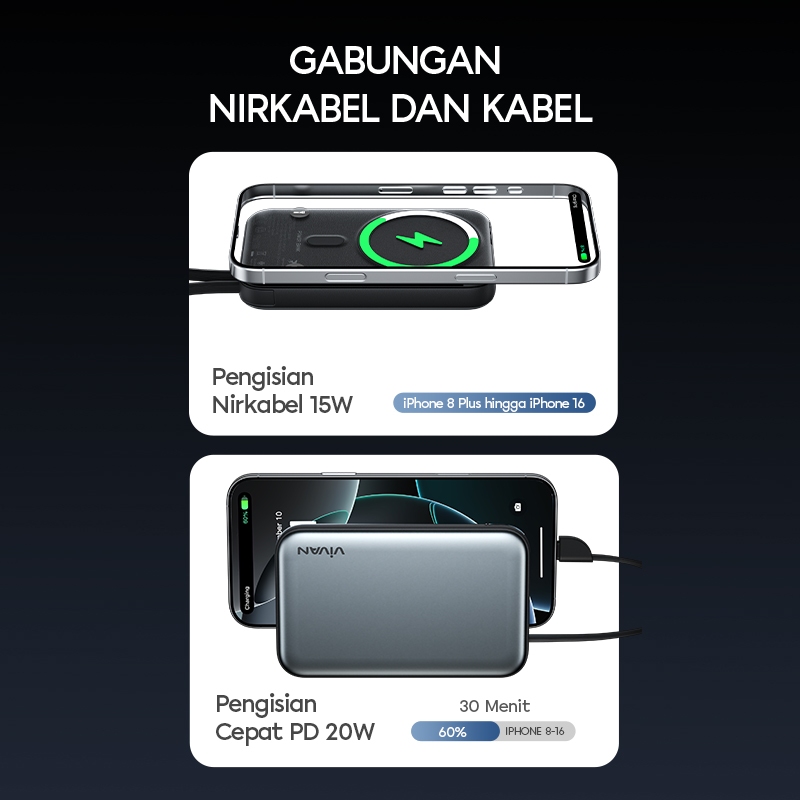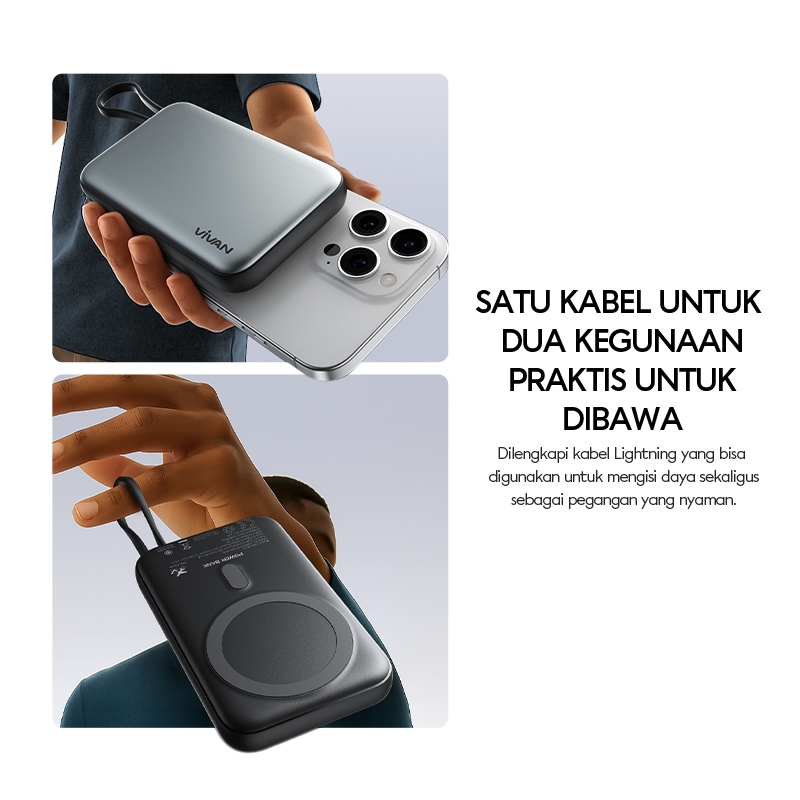 VIVAN Powerbank 10000mAh Magnetik Wireless PD 20W 15W 3 Output for iPhone 17 16 15 14 13 12 11 Type C