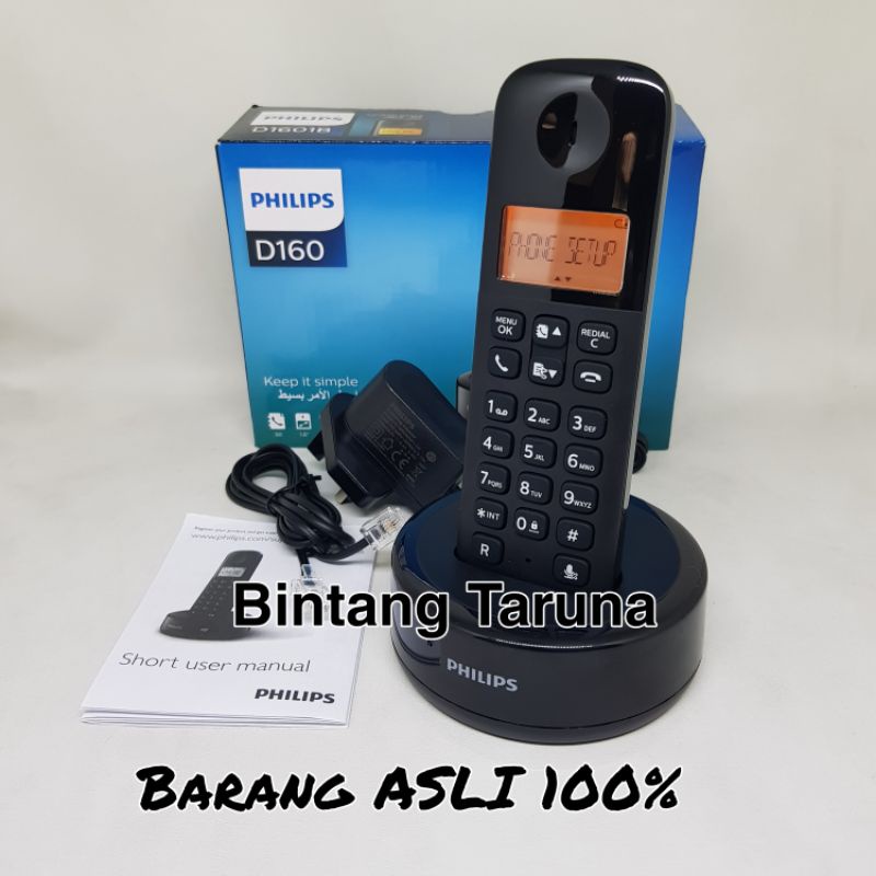 Wireless Phone Philips D160/90 Telepon Philips D160 Pesawat Telepon Nirkabel Philips D160 (Hitam)