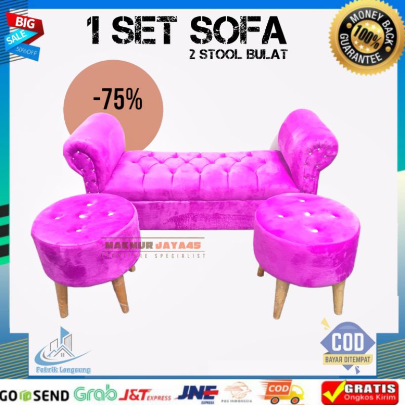 FLASH SALE 1 SET 1 SOFA MINIMALIS TANGAN + 2 STOOL BULAT BAHAN BULUDRU 130 CM ( READY STOCK NO PO )