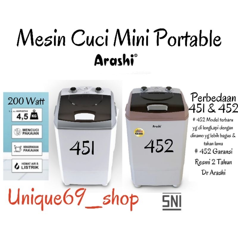 Mesin Cuci Mini Portable ARASHI AWM 451A - 4.5 Kg - Mesin Cuci Kecil - Garansi Resmi
