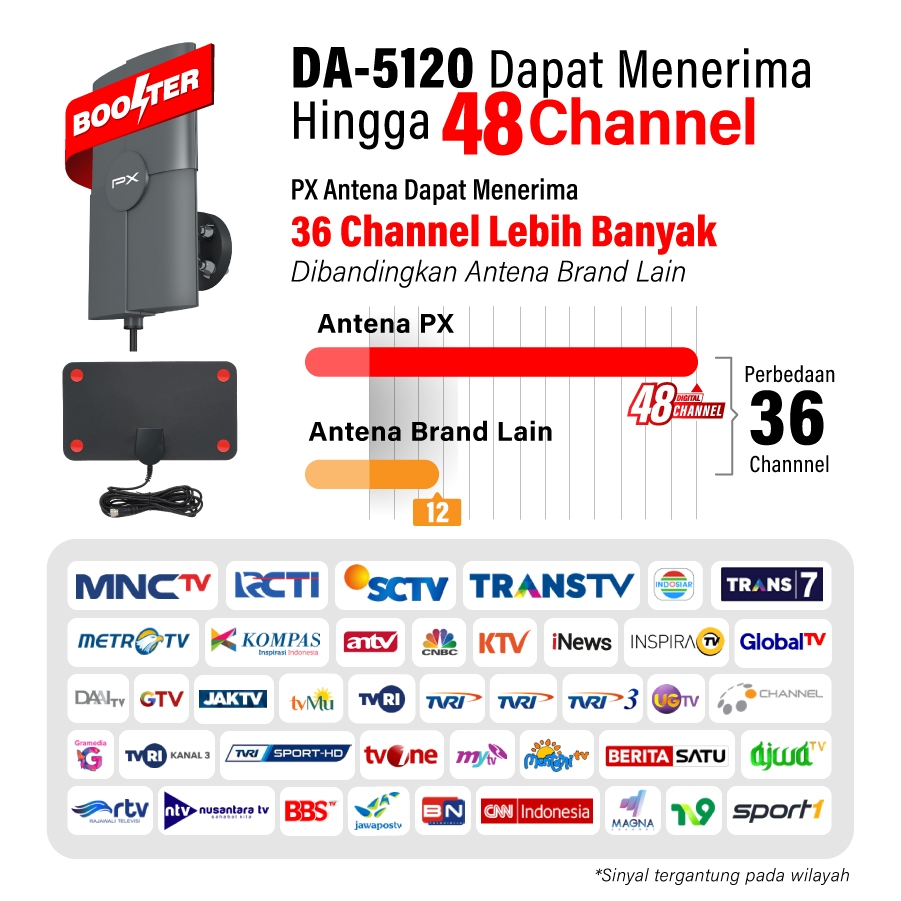Antena TV In/Outdoor PX DA-5120 Digital TV dengan Booster dan Power Inserter
