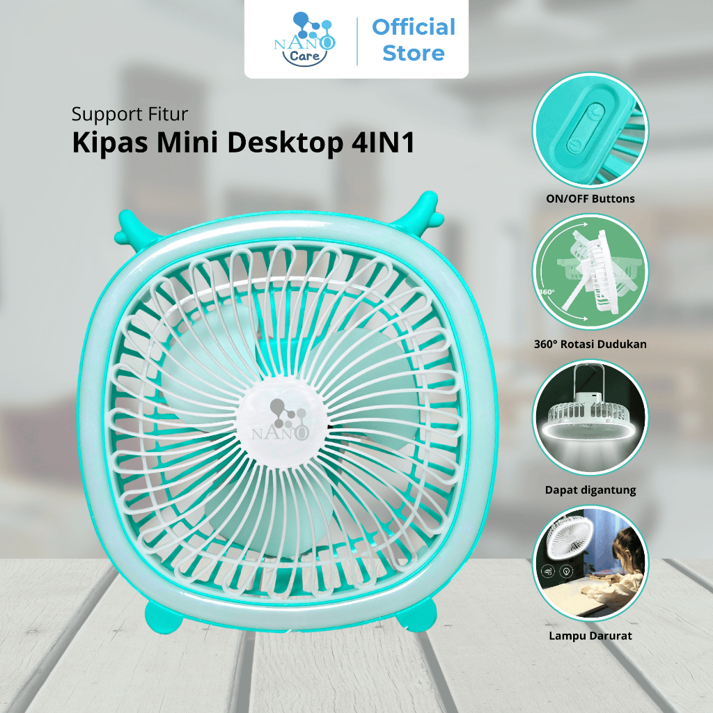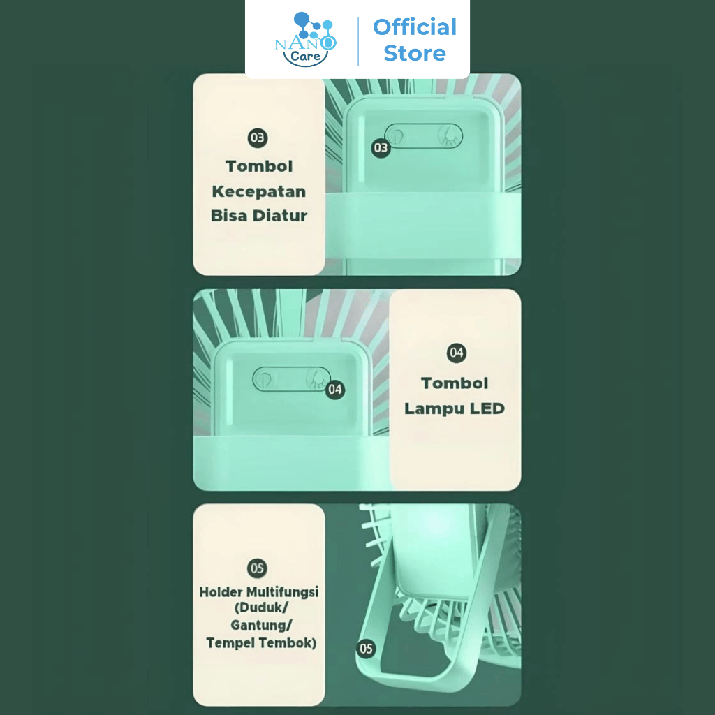 Nano Care Kipas Angin Portable 4IN1 Meja Lipat Dengan Lampu Belajar Kipas Duduk Multifungsi Gantung