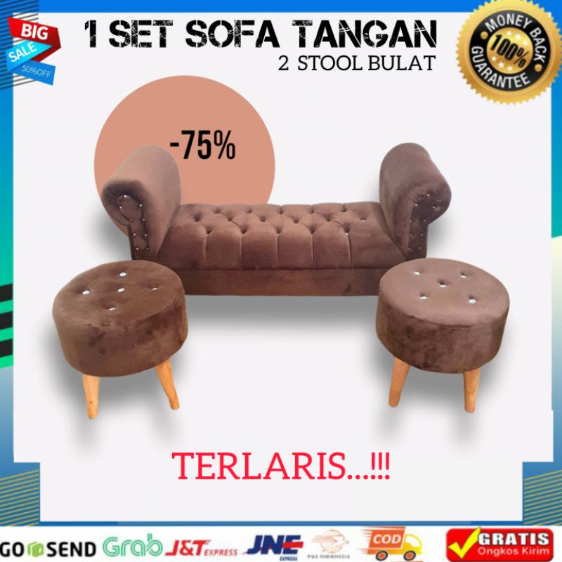 FLASH SALE 1 Set 1 Sofa CAROL Minimalis Tangan + 2 Stool Bulat Kancing Bahan Buludru Lembut Berkualitas
