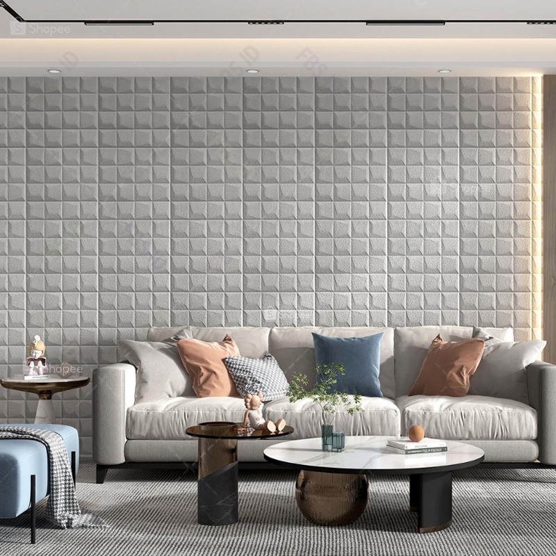 FLASH SALE Wallpaper Dinding Kulit Sticker Foam Sticker Foam Bulu Beludru Flanel Motif Diamond Ukuran 35cm x 35cm Wallpaper Panel Elegan Wal