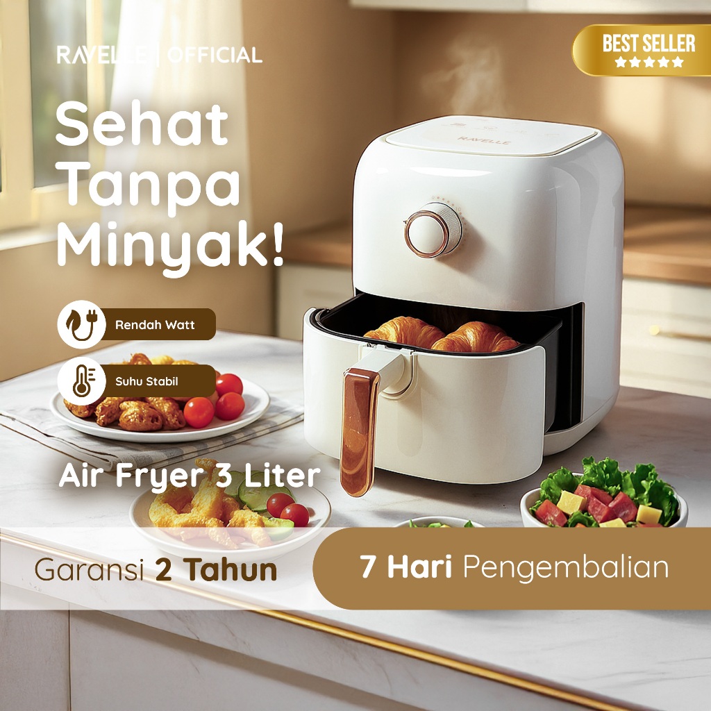 RAVELLE Air Fryer 3 Liter - Penggorengan Tanpa Minyak Low Watt