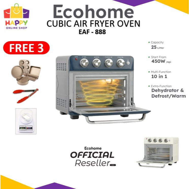 [Packing Kayu] ECOHOME Cubic Air Fryer Oven - Noble Series EAF-888 Low Watt 25 Liter