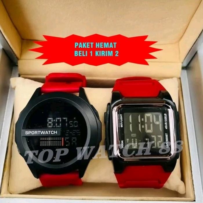 PAKET HEMAT!!!BUY 1 GET 2 JAM TANGAN DIGITAL ANTI AIR FITUR LENGKAP TALI RUBBER bayar ditempat - ARMY isi 2