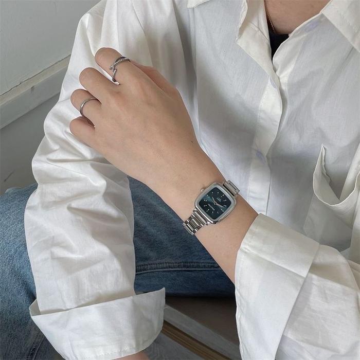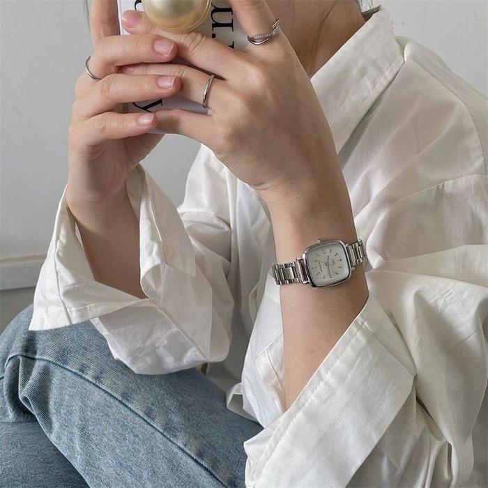 Jam Tangan Wanita Kantoran Tali Stainless Steel Fashion Girl Unik 159 - silver putih