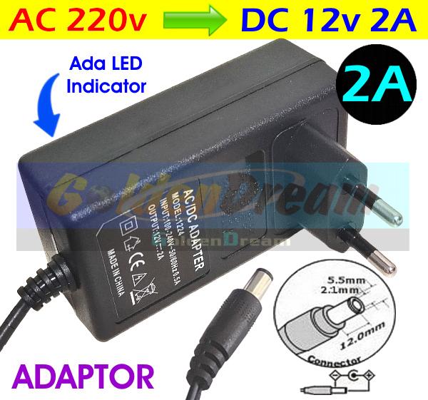 ADAPTOR DC 12V 2A IN: 220V AC POWER SUPPLY 2.1X5.5MM ADAPTER LED CCTV