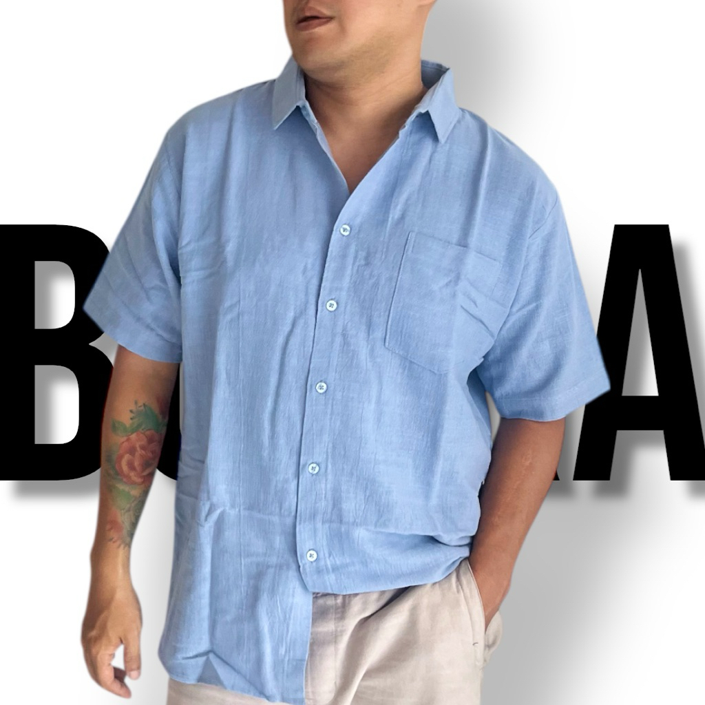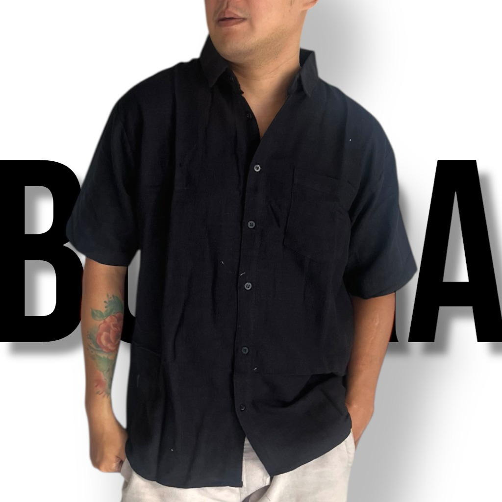 BORRA - KEMEJA LENGAN PENDEK SERAT JAGUNG PRIA | LINEN PREMIUM M - XXXL