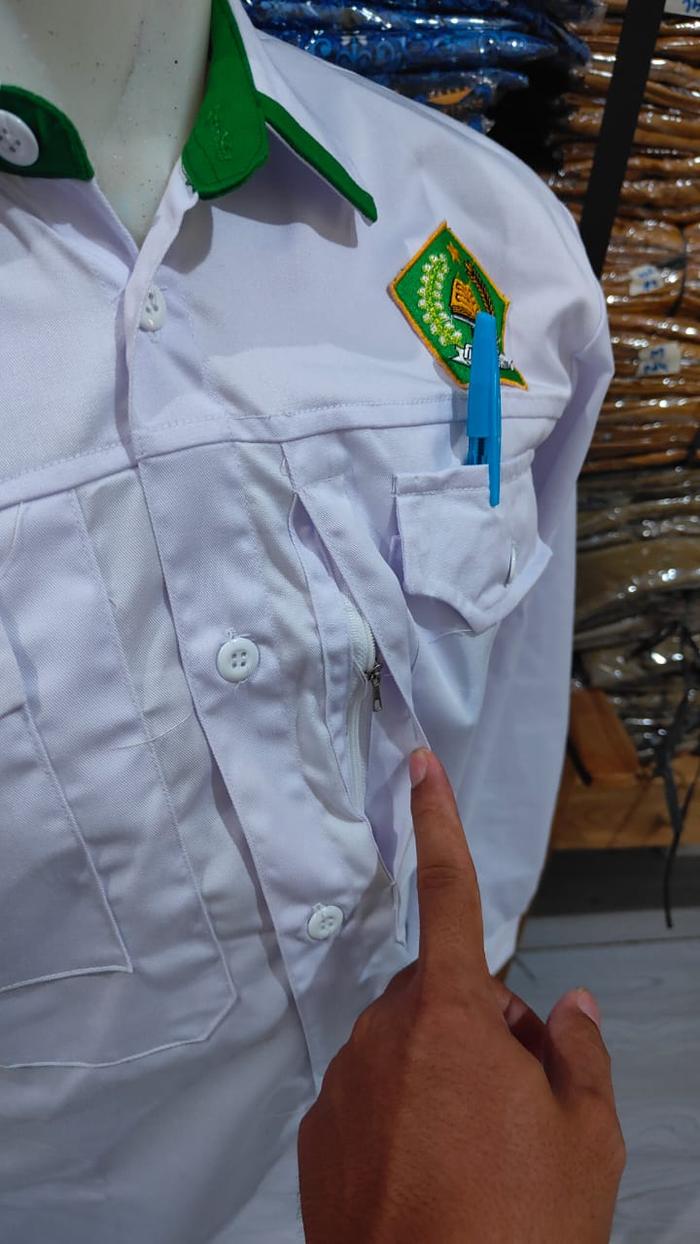 BAJU PDH PRIA KEMENAG PUTIH LENGAN PANJANG BAHAN AMERICAN DRILL / BAJU PUTIH PPPK / SERAGAM PUTIH ASN DAN PNS - S
