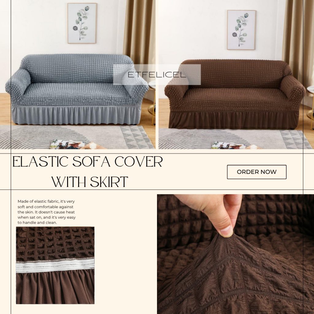 FLASH SALE Elastic Sofa Cover With Skirt Sarung Alas Penutup Sofa Renda Elastis Polos Strecth Tebal
