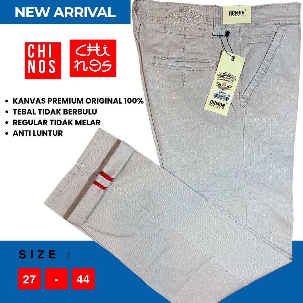 Celana Panjang Chinos Pria Reguler Fit Katun Canvas Tebal Premium Original 100 PERSEN Arman Republic Jumbo 27 Sampai Big size 45